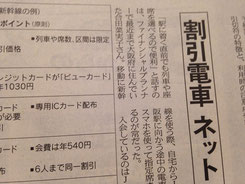 ”得々家計” 「割引電車ネットで直前予約」のコーナーで、FPとしてJRのお得な活用法についてお話しした記事を載せて頂きました。毎週土曜日の ”日経プラス1” のファンである私!小さくですが名前も載せて頂いて嬉しかったです!