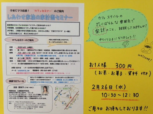 子育てママ向けセミナーです。今回は「社会保険・年金・民間の保険」